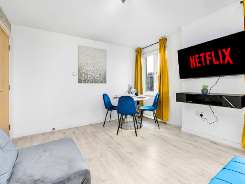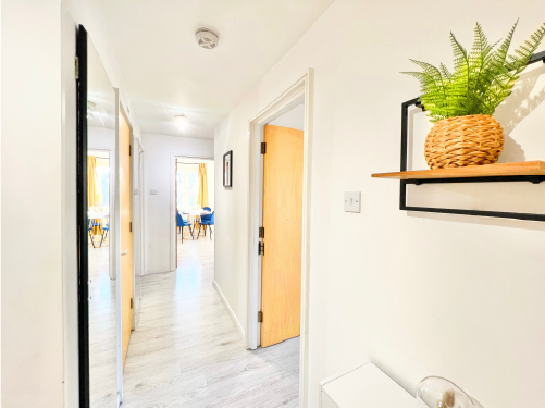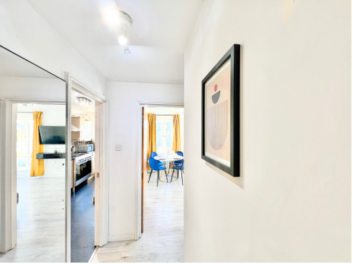 The house includes a modern bathroom, fast Wi-Fi, and a fully equipped kitchen, perfect for both short breaks and longer stays. Guests also benefit from private off-street parking and a convenient location close to local shops, public transport, and key amenities.